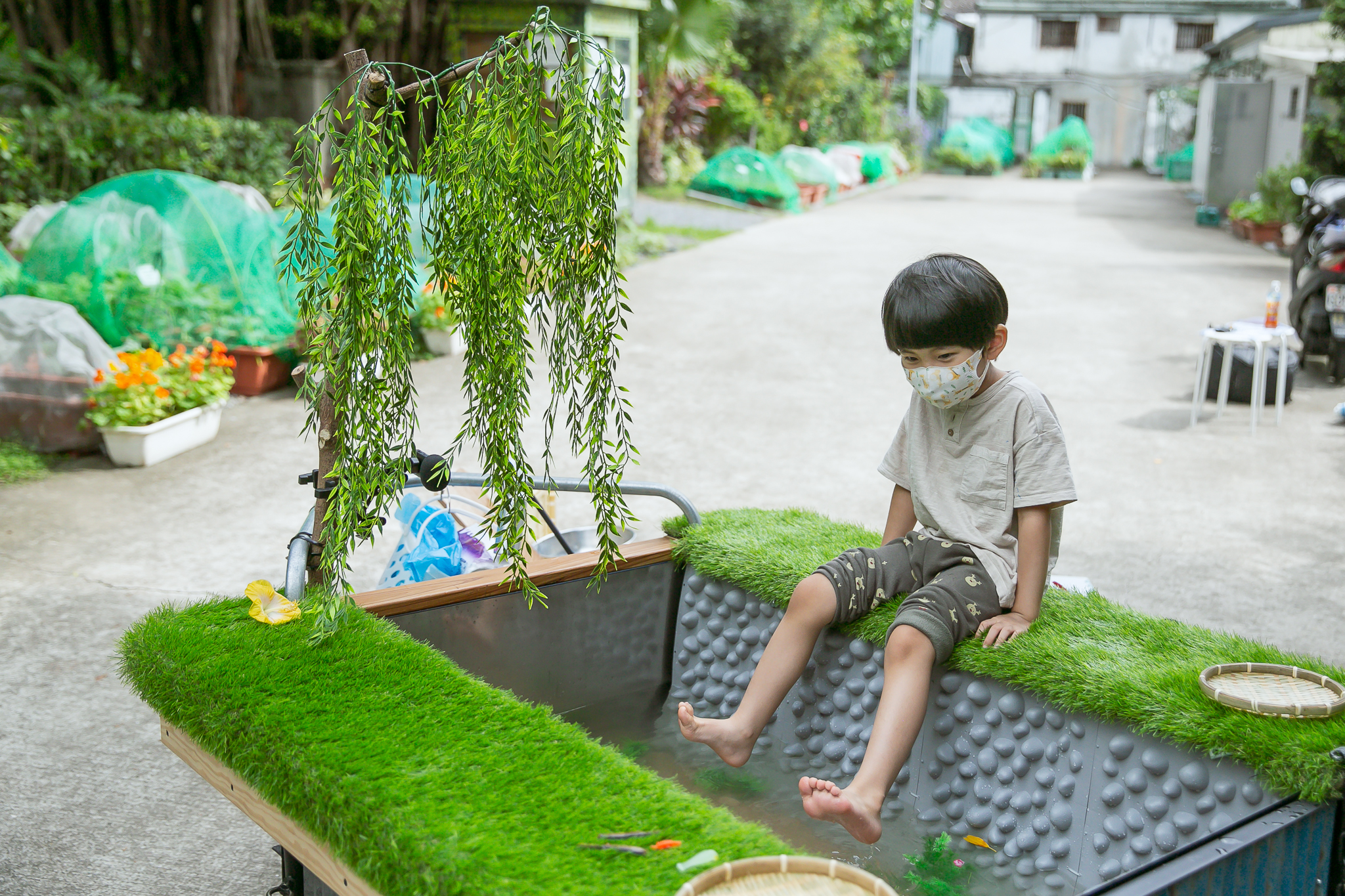 本次計劃研究與踏查公館一帶的水圳,包含流經蟾蜍山的瑠公圳後段和台大外圍的霧裡薛圳,並訪談與搜集在地居民的水圳記憶。計畫的主要作品《尋流號》是依踏訪研究改造拖車製成的仿水渠親水小車,並搭配居⺠在10/31-11/4於水圳沿線體驗同樂時發出的聲響而成的聲音裝置,希望可以從地方文史經驗獲得城市空間的不同想像;展覽另展出依照研究與體驗結果虛構成的生活影像紀錄《我家門前有水圳》以及紀錄汀州路附近倖存水圳的錄像作品《尋流》。展覽藉由錄像紀錄水圳的現況,以裝置召喚過去的美好,利用聲音和影像串連時空,映射出不同的城市空間想像,希望對探索城市未來的走向與認同有更多能動性。